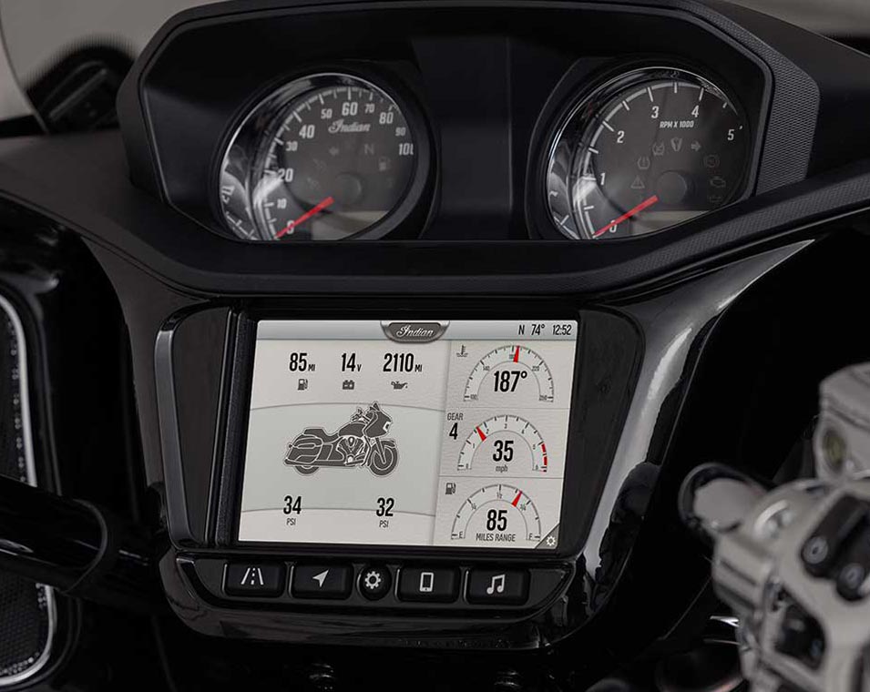 | Alapfelszereltség | 7 colos érintőképernyő a RIDE COMMAND által működtetett navigációval és Apple CarPlay integrációval; Smart Lean technológia; választható menetmódok: Zárható kemény nyeregtáskák: Brembo fékek: 18+ gallonnyi tárolóhely: ABS: Kulcs nélküli gyújtás: Vázra szerelt burkolat: Elektromos szélvédő: Állítható burkolati légáramlási szellőzőnyílások; Elektromos szélvédő: Állítható szellőzőnyílások; 12V-os töltőport |