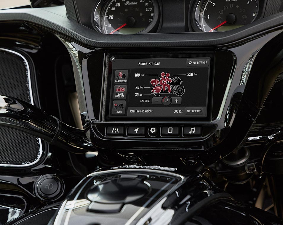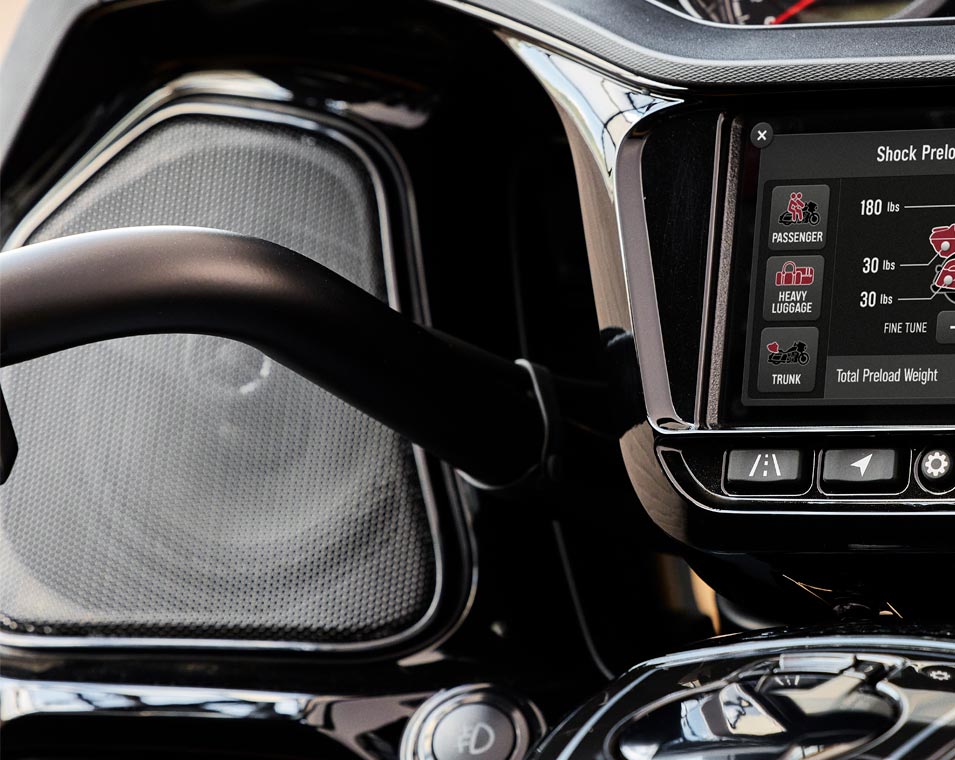 | Alapfelszereltség | Smart Lean technológia; elektronikusan állítható hátsó felfüggesztés előfeszítés; fűtött ülés; integrált vezetési lámpák az alsó burkolatba; alsó burkolati tároló; 7 colos érintőképernyő a Ride Command és Apple CarPlay integrációval; választható vezetési módok; hátsó hengerek kikapcsolása; sebességtartó automatika; gumiabroncsnyomás-ellenőrzés; Távolról zárható kemény nyeregtáskák és csomagtartó; több mint 36 gallon tárolóhely; autópálya rudak; állítható utasoldali padlólemez; Brembo fékek; ABS; kulcs nélküli indítás; alvázra szerelt burkolat; elektromos szélvédő; állítható burkolati légáramlási szellőzők; fűtött markolatok; 200 wattos audiorendszer AM/FM, Bluetooth, USB, okostelefon-kompatibilis bemenet; 12V-os töltőcsatlakozó. |