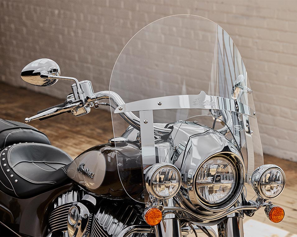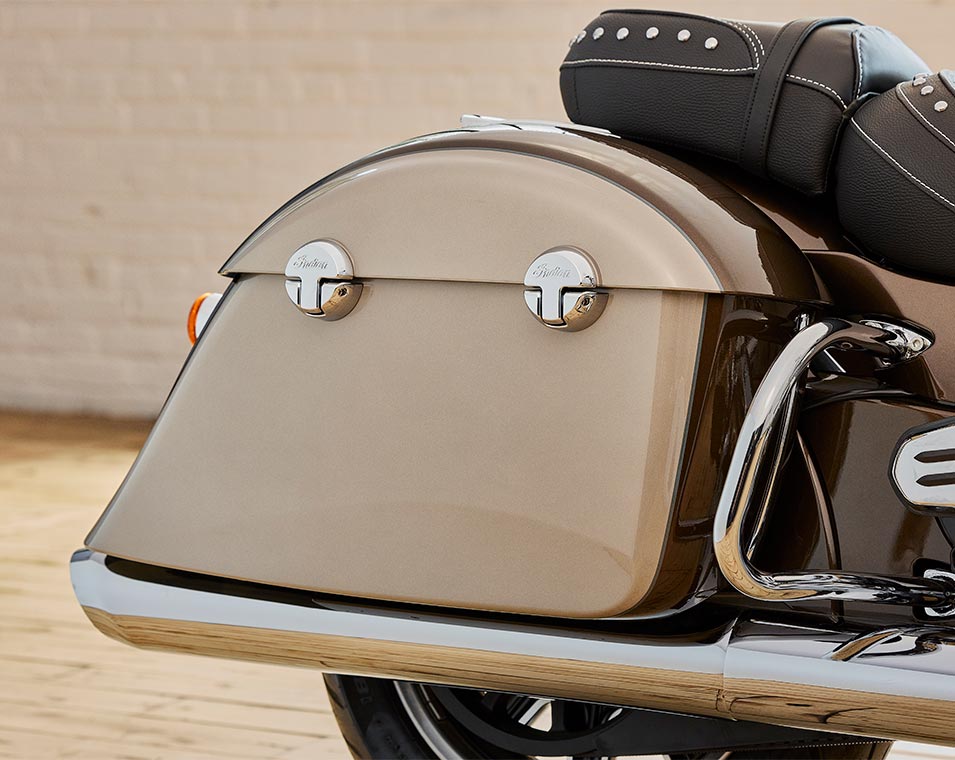 | Alapfelszereltség | Gyorsan kioldható szélvédő; valódi bőrülés; távirányítóval zárható kemény nyeregtáskák, autópálya rudak; guminyomás-ellenőrzés; fénysorompó; választható menetmódok, ABS; tempomat; kulcs nélküli indítás; Indian® Script Tank jelvény; 12v töltőport |