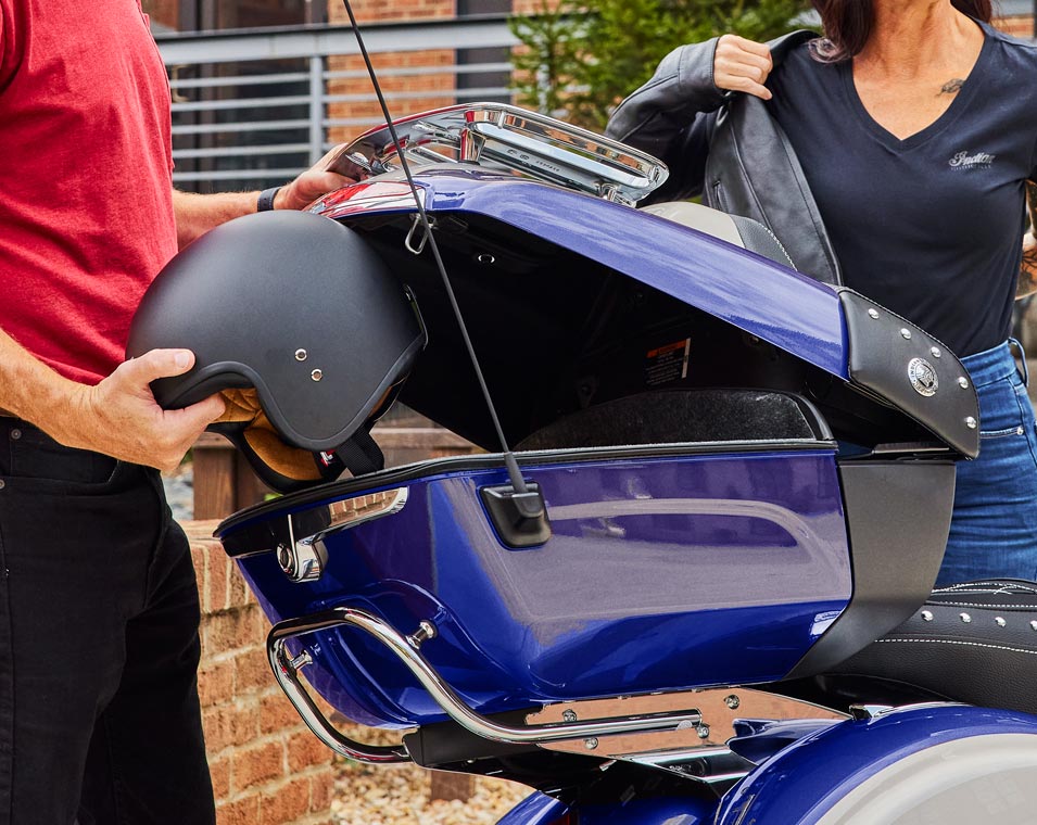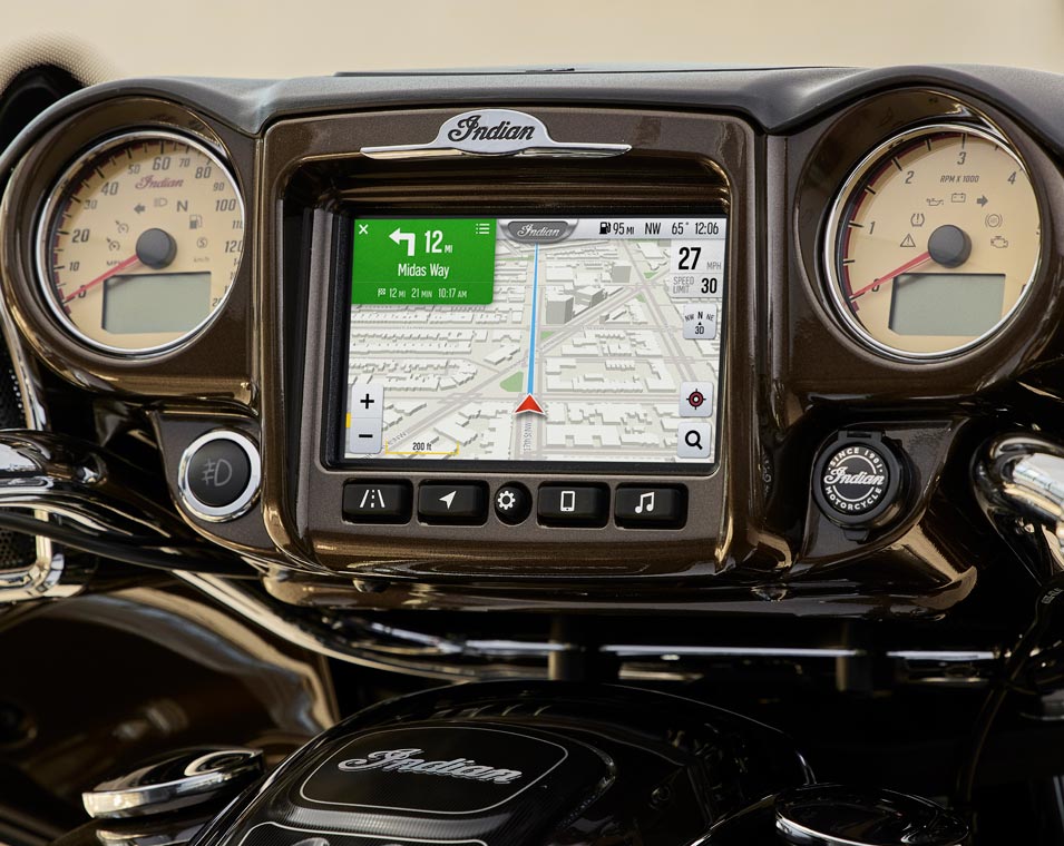 | Alapfelszereltség | 7 colos RIDE COMMAND kijelző Apple CarPlay integrációval; elektromos szélvédő; távolsági fényszórók; autópálya sávok; vinyl ülések (különálló fűtésvezérlés); fűtött markolatok; állítható utasoldali padlólapok; 36,2 gallon tárolóhely; gumiabroncsnyomás-ellenőrzés; távirányítós kemény nyeregtáskák. |