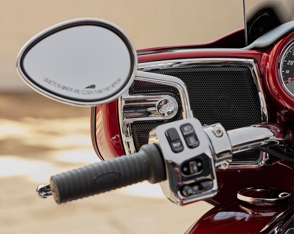 | Alapfelszereltség | 7 colos érintőképernyő RIDE COMMAND Apple CarPlay® integrációval; elektromos szélvédő; autópálya-korlátok; Vinyl Rogue ülések; fűtött markolatok; állítható utasoldali padlólemez; 36,2 gallon tárolóhely; gumiabroncsnyomás-ellenőrzés; távirányítóval zárható kemény nyeregtáskák. |