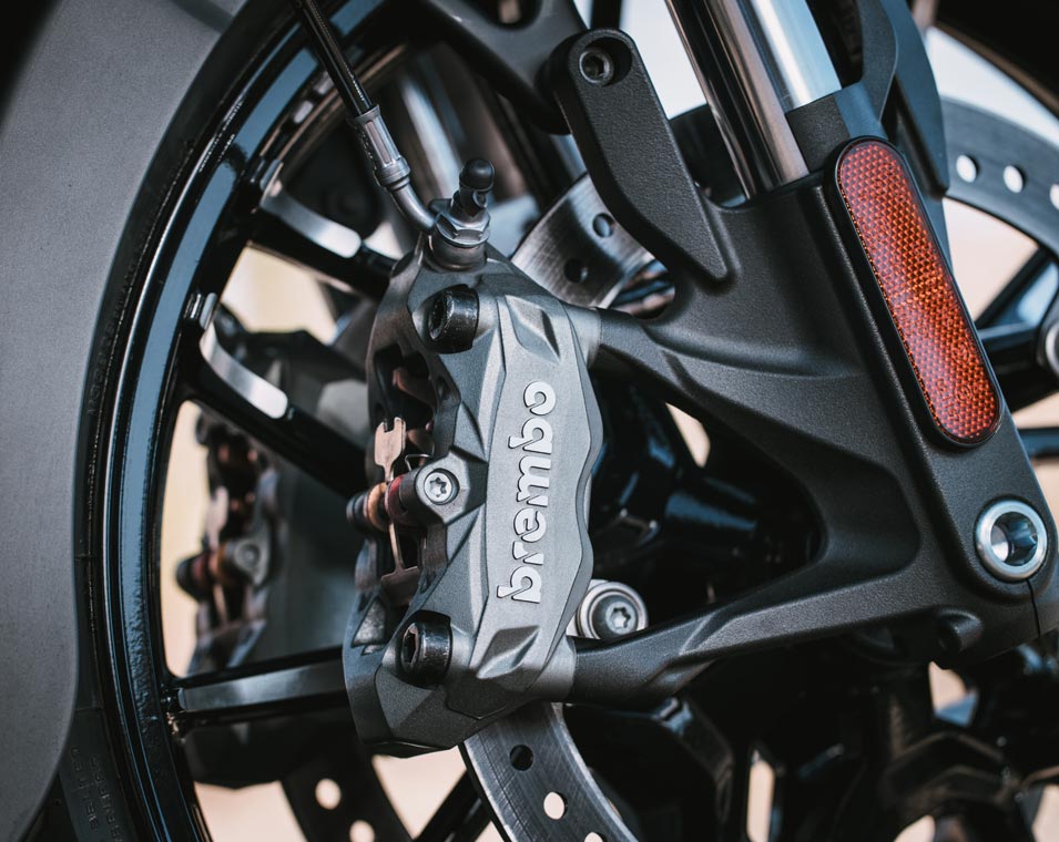 | Első fékek | Brembo® féknyergek, dupla, félig lebegő tárcsák: 320 mm x 5,0 mm |